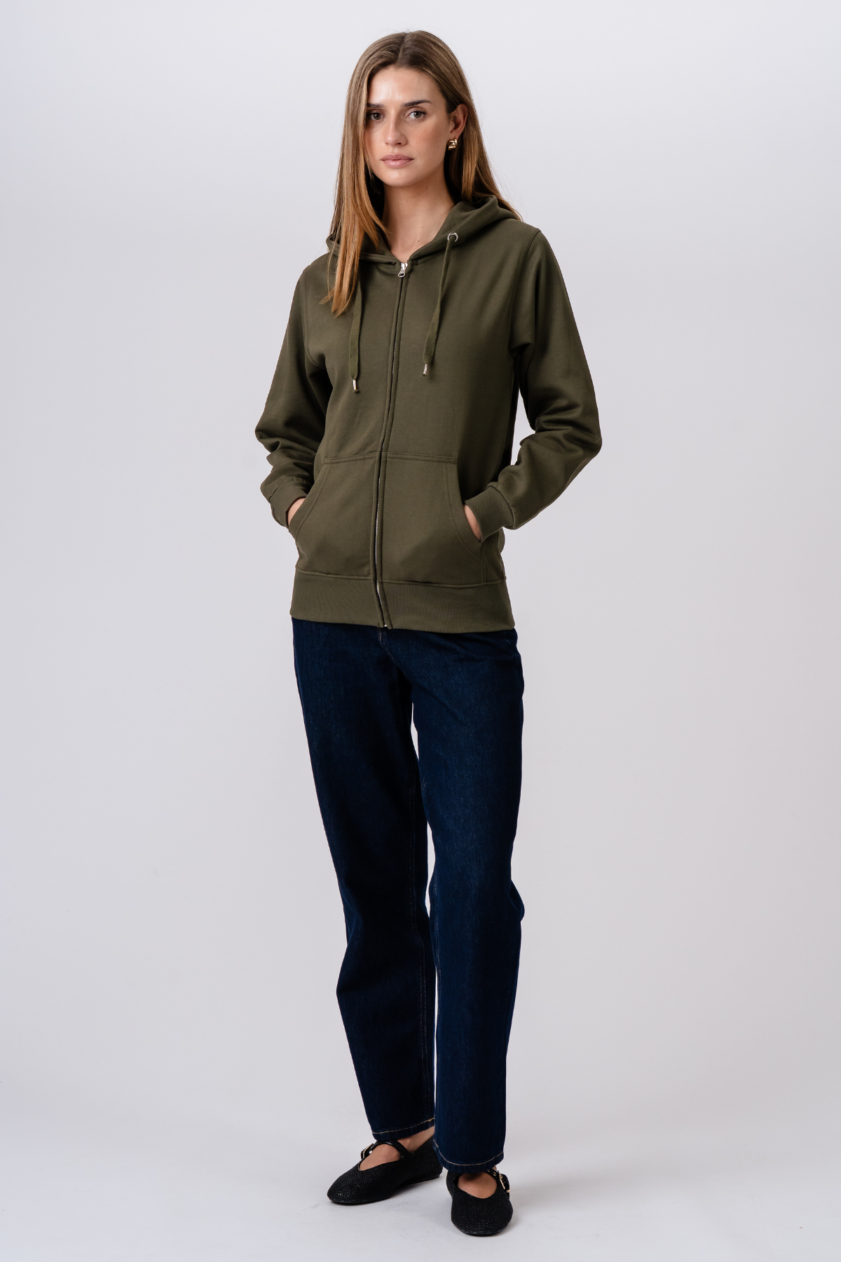 Basic Zip Hoodie - Armee