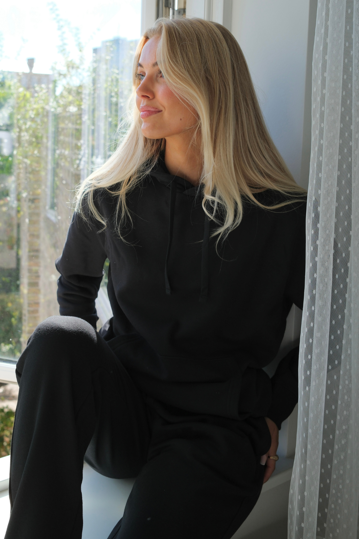 Die Tiefe, Reiche Schwarz Die Farbe dieses Essential Hoodies ist der Inbegriff schicker Vielseitigkeit. Schwarz ist immer in Mode, mühelos raffiniert und lässt sich unglaublich einfach mit fast allem in Ihrem Kleiderschrank kombinieren. Bedenken Sie die Möglichkeiten: