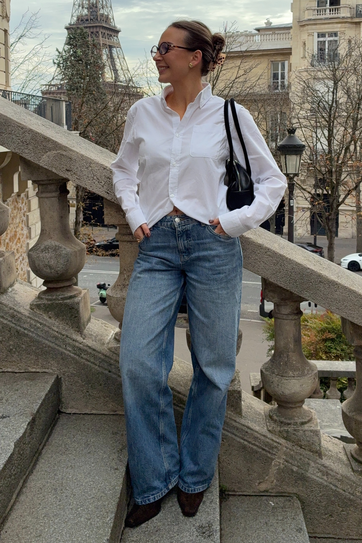 Die wahre Schönheit des weißen Freundes Oxford liegt in seinen endlosen Styling -Möglichkeiten. Für ein poliertes Büro-Look stecken Sie es in ein Paar hoch taillierter Pants und fügen Sie einen Blazer hinzu. Auf dem Weg zum Wochenende? Hälfte es in deine Lieblingsjean Shorts. Es dient sogar als schicke, leichte Vertuschung für den Strand. Dieses eine Shirt sperrt eine Welt von Outfits und vereinfacht Ihre Garderobe und erhöht gleichzeitig Ihren Stil.