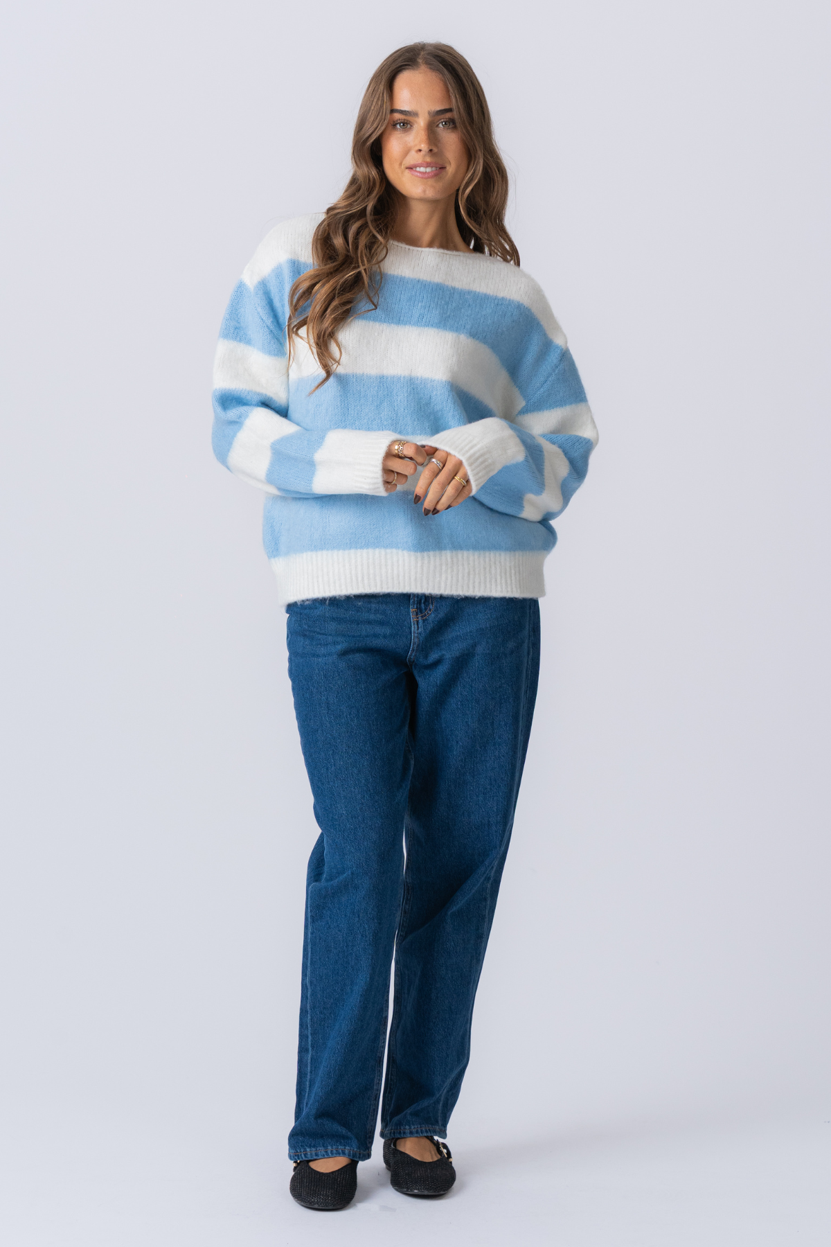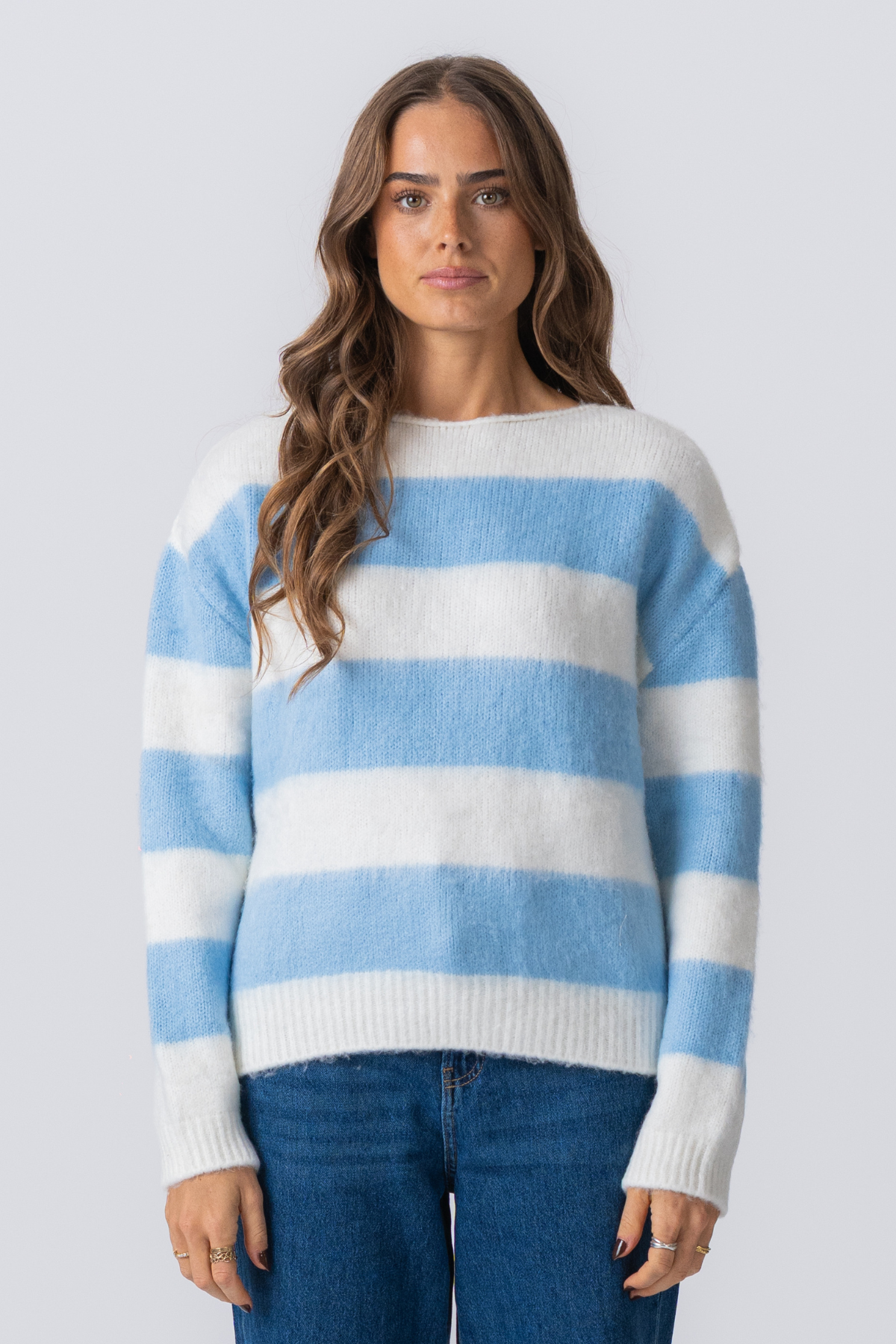 Treffen Sie den Celina Striped Strick-Pullover, Ihren neuen Anlauf an zeitlosen Stil und unglaublichem Komfort. Dieser Pullover wurde für die moderne Frau entwickelt, die sowohl Raffinesse als auch Leichtigkeit schätzt, und fängt die Essenz des schicken, alltäglichen Luxus ein. Die ruhigen himmelblauen Streifen vor einem knusprigen weißen Hintergrund erzeugen einen klassischen, nautisch inspirierten Look, der sich frisch, luftig und endlos vielseitig anfühlt. Stellen Sie sich vor, Sie machen sich an einem kühlen Morgen oder einem luftigen Abendspaziergang - der Celina -Pullover ist der perfekte Begleiter für das Leben. 's Schöne Momente.