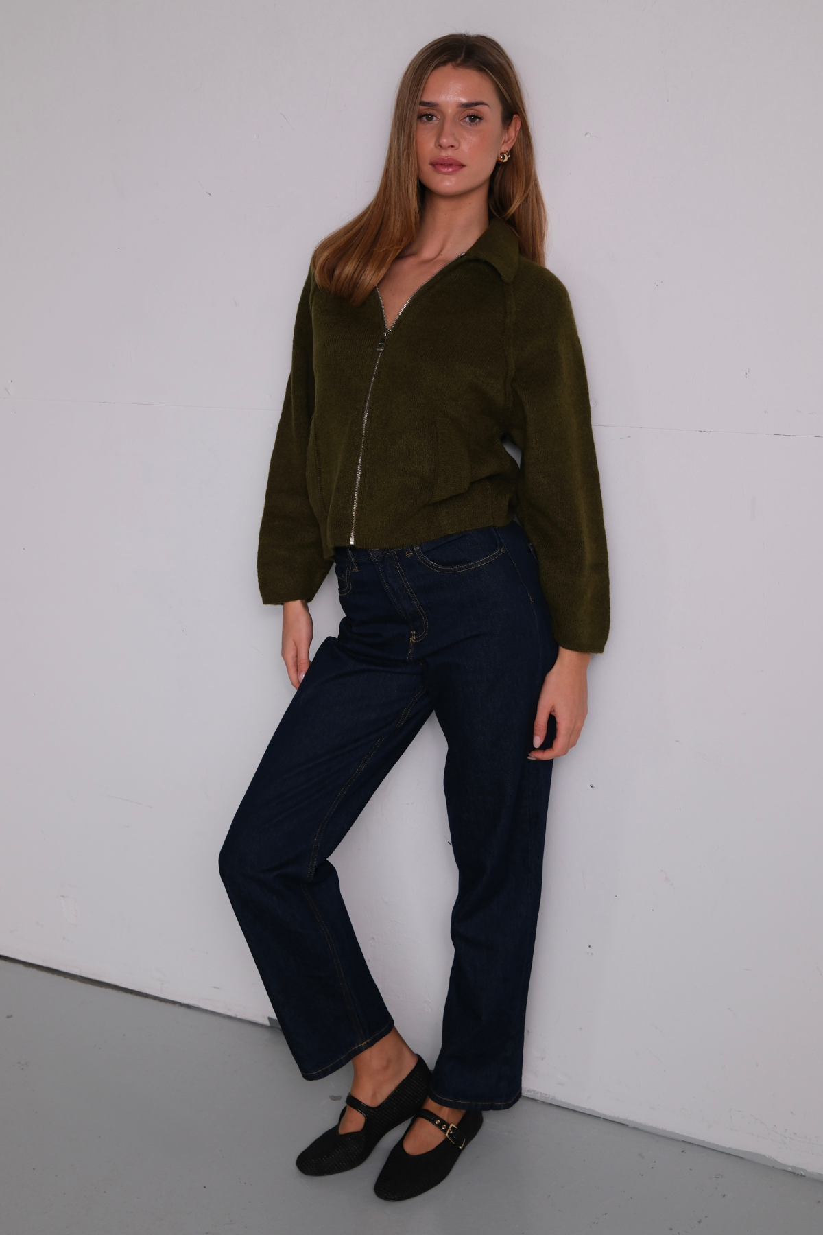 Stellen Sie sich ein einzelnes Kleidungsstück vor, das die kuschelige Umarmung Ihres Lieblingspullovers mit der schicken Struktur einer leichten Jacke verbindet. Lernen Sie den Selma Knit Zipper in Khaki kennen, ein Meisterwerk an Vielseitigkeit und Komfort, das Ihren Alltagsstil aufwerten soll. Dies ist nicht nur ein weiteres Stück Strick; es's Die Lösung für jene Tage, an denen Sie sich sowohl nach Raffinesse als auch nach müheloser Leichtigkeit sehnen und nahtlos von einem anstrengenden Morgen zu einem entspannten Abend übergehen.